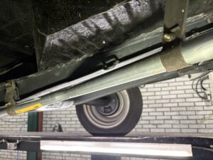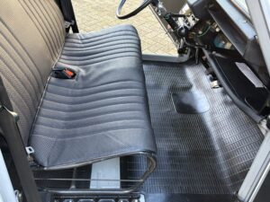 Zo’n 15 jaar geleden heeft de auto een ‘money-no-object’ restauratie ondergaan. De auto is letterlijk tot het laatste schroefje uit elkaar geweest. Daarbij is een nieuw chassis geplaatst (essentieel bij een 2CV) en is alles vernieuwd of geperfectioneerd. Wie de moeite neemt om onder de auto te gaan liggen, ziet een bodem waar simpelweg geen smetje op zit. Geen roest, geen vuil, pure perfectie.